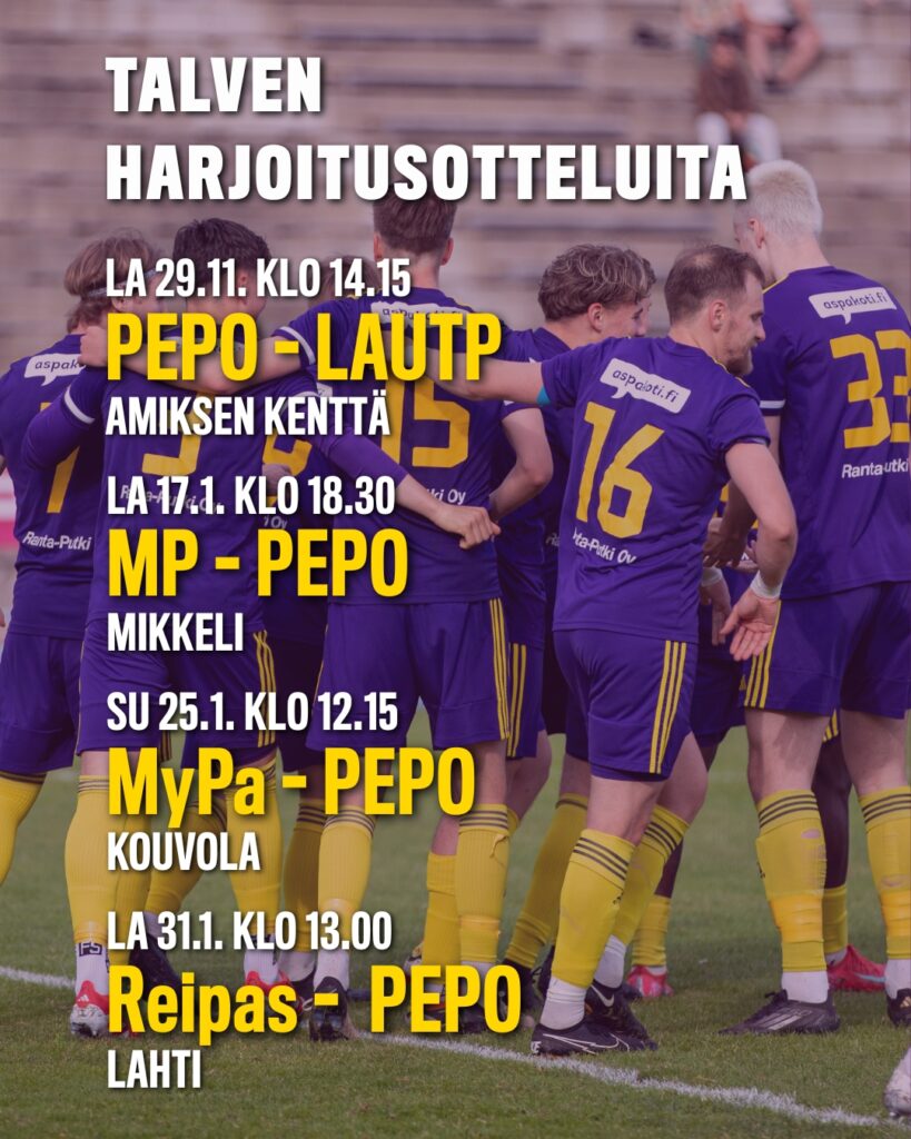 PEPO aloittaa valmistautumisen tulevaan kauteen ja pelaa talven ensimmäisen harjoitusottelunsa jo tulevana lauantaina. Vastaan … - Elias Lattu jatkosopimukseen!