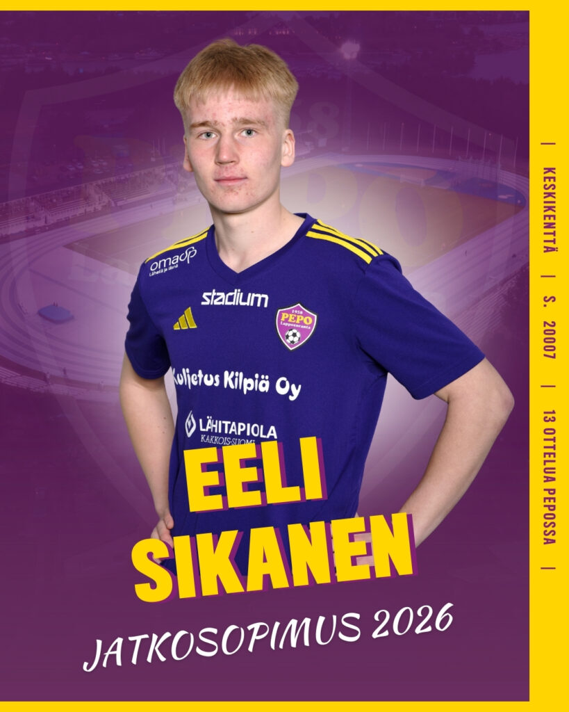 PEPO-kasvatti Eeli Sikanen jatkaa lilapaidassa myös kaudella 2026. Keskikentällä pelaava, tänä vuonna 18 vuotta …