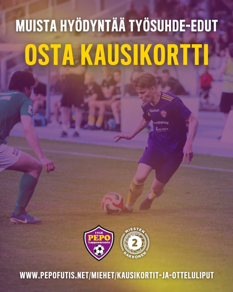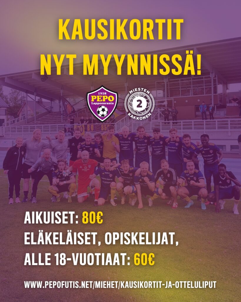 PEPO:n Kausikortit kaudelle 2026 ovat nyt tilattavissa. Tilausohjeet ja tilauslomake löytyy ao. linkistä Kausikortit … - Eeli Sikanen jatkaa keskikentällä!